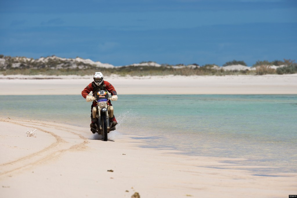 “Yesterday was the Kalbarri Death March, haha.. It started off well, nice fast 100k stage, fast and flowing. Second stage was a reverse of an earlier one, and halfway through I lost the back brake cable. Ironically, brakes allow you to ride faster. At first I used some fence wire to bodge it, but could never really get enough tension so it was really just to hold the brake pedal up out of the way. As someone pointed out, its a BMW and therefore doesn’t really need a rear brake. Just downshift and BBBWWOOOAAA down you go.