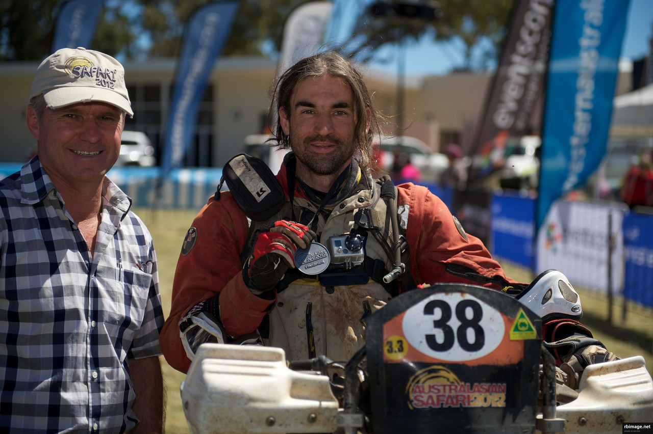 Jason’s effort was rewarded with the ‘Andy Caldecott Award’. Andy Caldecott is an Australasian Safari legend who passed in the 2006 dakar rallye. Ross Briggs snapped this picture of Jason with his finishers medallion.