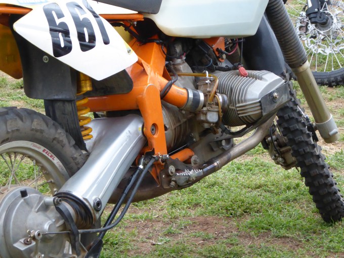 Above is a the box frame used in touring form, and coupled with the ever reliable mono series final drive. This machine has made several intercontinental journeys.